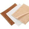 エステやホテルにもおすすめのしっかり厚みのある、34×35cmのサイズです。 スレン染めなので、漂白や繰り返しの洗濯でも色落ちしにくく、上品なモカ・ブラウン・白の3色展開です。同タイプのフェイスタオル・バスタオルもあります。